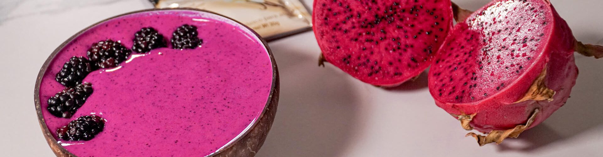 Agora que você já sabe quais são os benefícios da pitaya, vai adorar conhecer essa receita de creme de pitaya com banana e Vanilla Whey!