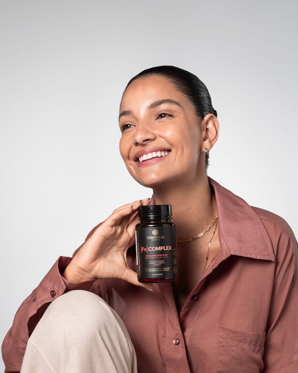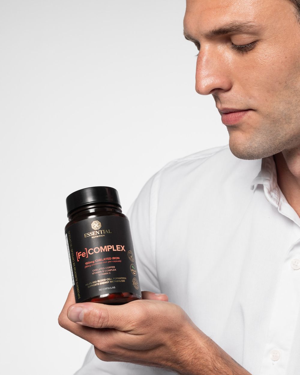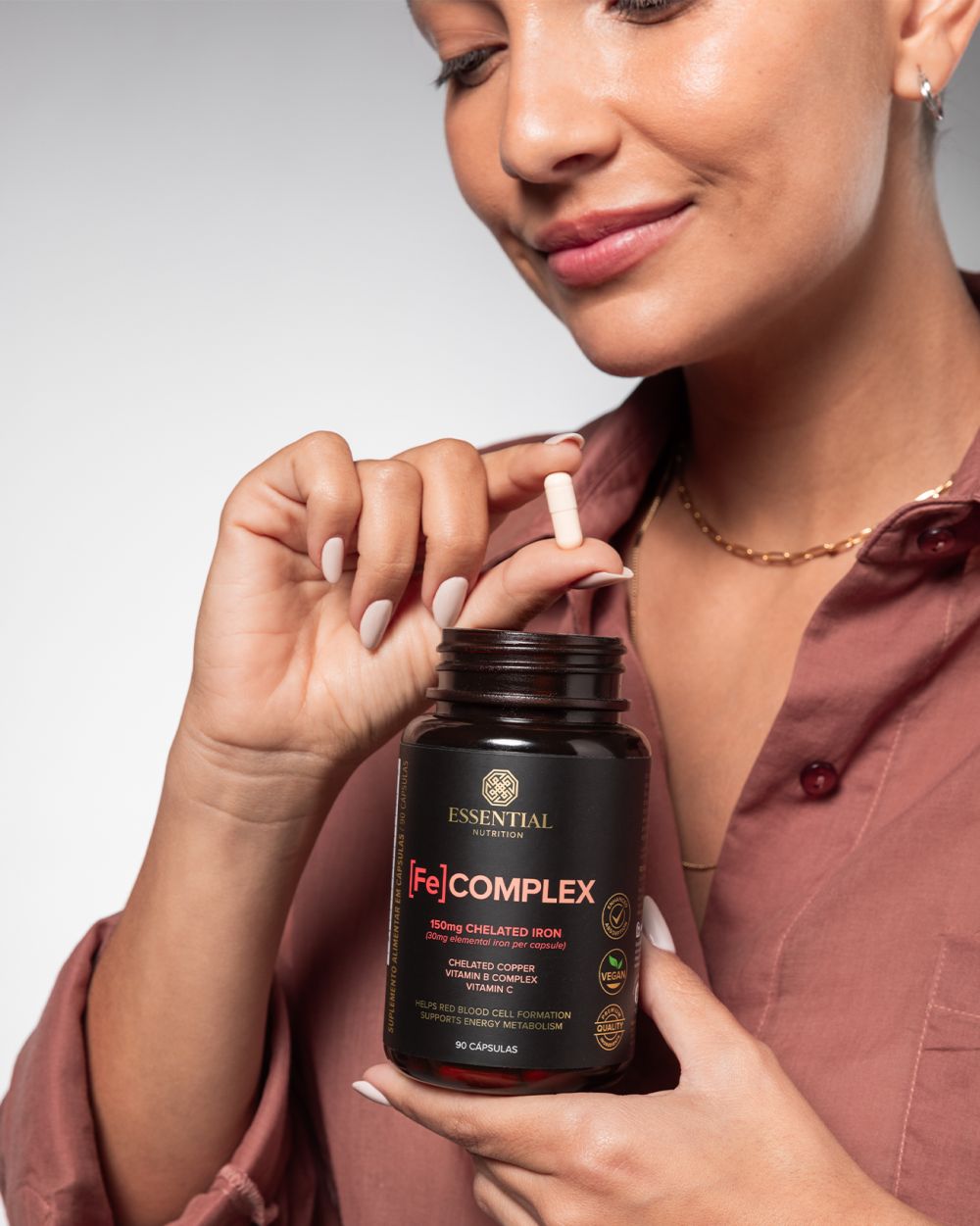[Fe] COMPLEX é um suplemento formulado com ferro quelado, cobre quelado, vitamina C e vitaminas do complexo B. Esses nutrientes foram escolhidos para trabalhar em sinergia, proporcionando melhor absorção e aproveitamento do ferro pelo organismo.
