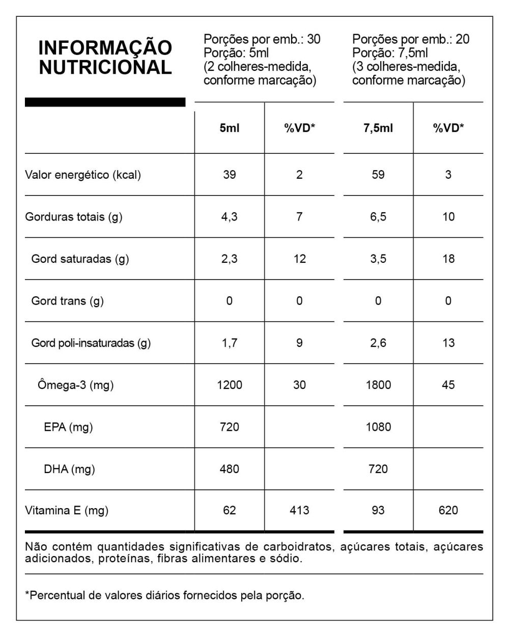 de 7,5ml, enquanto Liquid DHA Essential contém 1500mg de DHA em apenas uma dose de 7,5ml. A